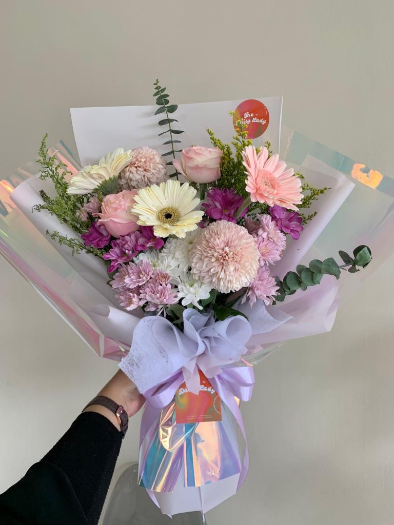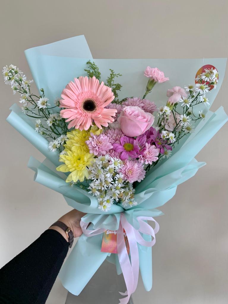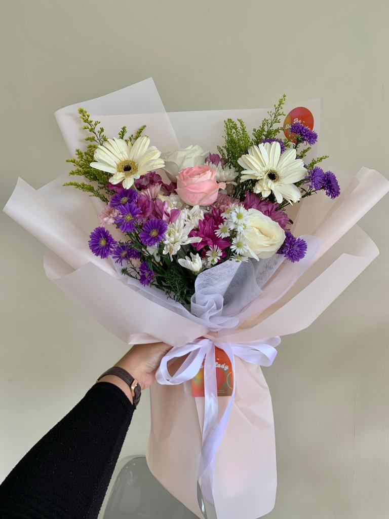 Gerbera, gompies, aster mix, filler